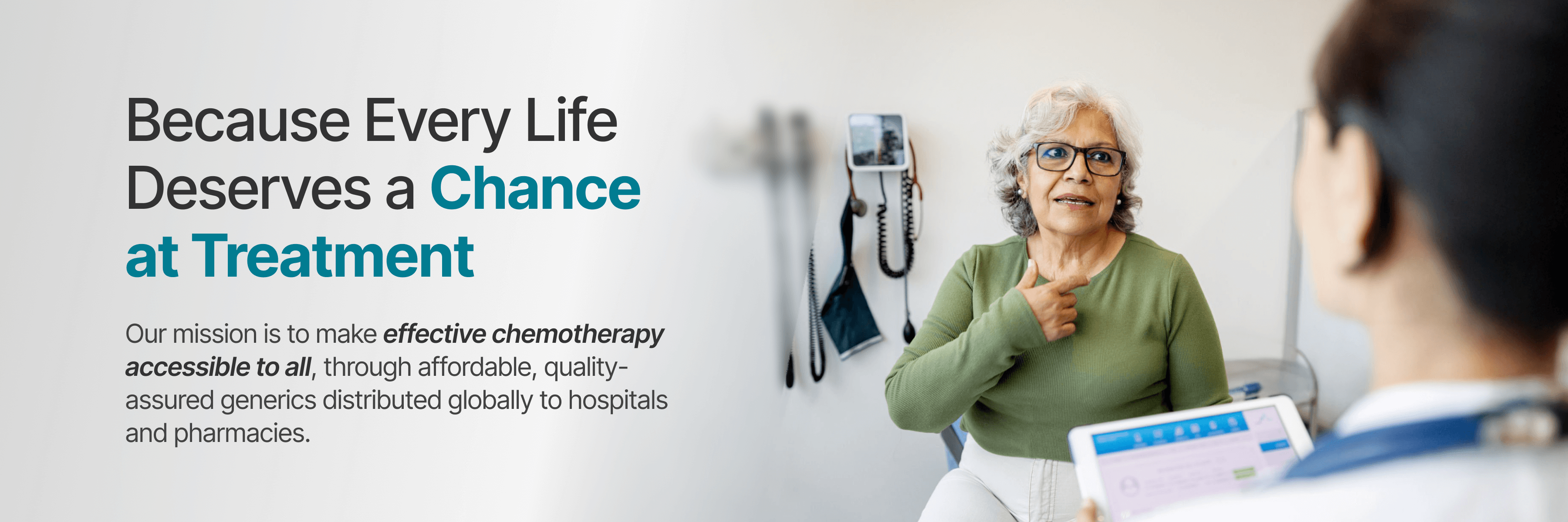 Somos un distribuidor internacional (excluyendo EE. UU.) de quimioterapia genérica que utiliza bajos márgenes de ganancia para brindar la mayor cantidad posible de quimioterapia con fines curativos a los pacientes.